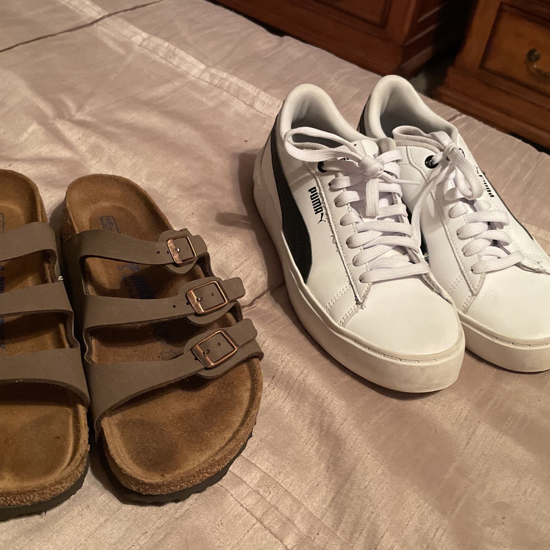 Barely worn shoes….daughter just grew too fast. Size 8 for Puma and think 7 ½ for Birkenstock. $60 for each but if buying both will discount.