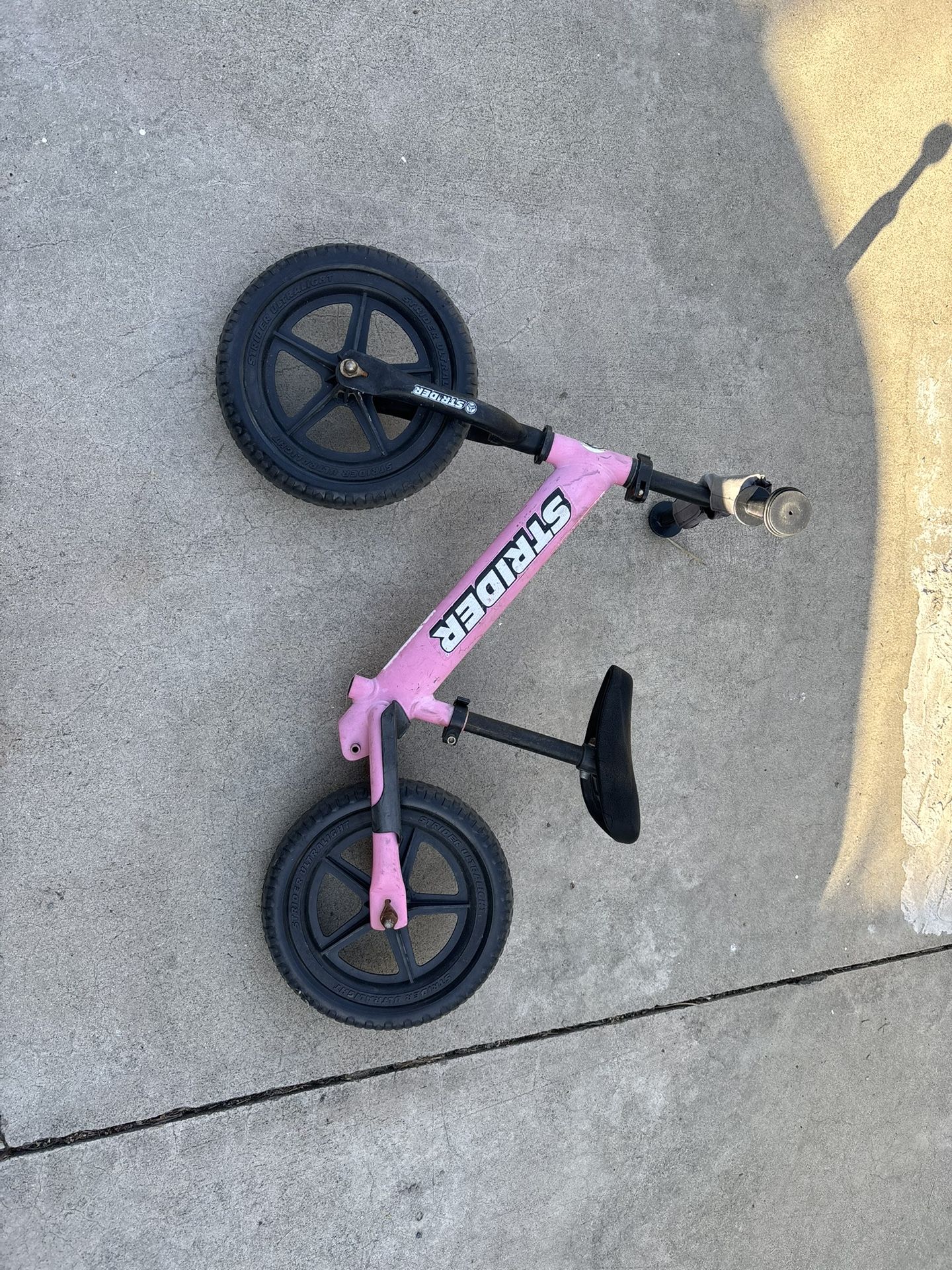 Pink strider balancing bike. It’s used good for 1 years olds and up to learn to ride a bike