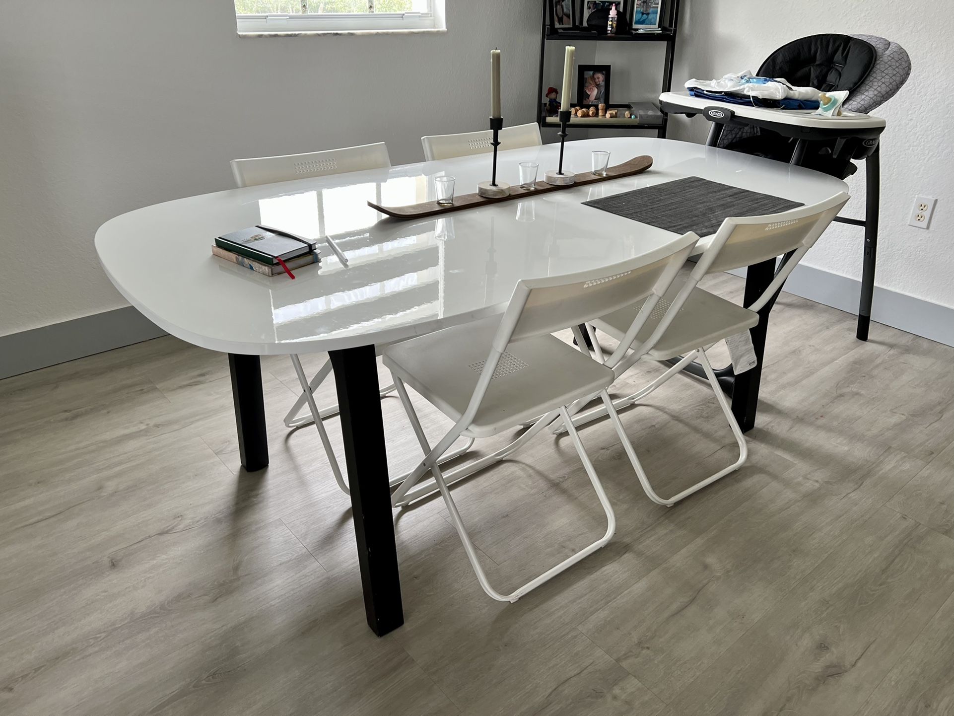 Ikea Vedbo dinner table. 73 x 35 1/2 measurements. Fits 6 people with plenty of elbow room and space to have multiple items on the table. Barely used since were always traveling. Price is OBO.