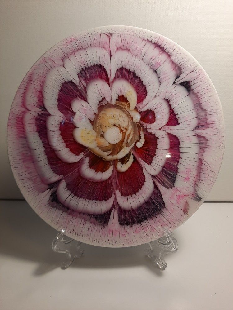 This is a stunning round resin flower decor in various shades of pink and white. It measures approximately 7 inches in diameter. Plate stand is included. If you are interested in multiple items, please send me a message BEFORE purchasing so I can make a special bundle for you to save on shipping fees. Please be sure to check out my other items for sale. Blessed be!