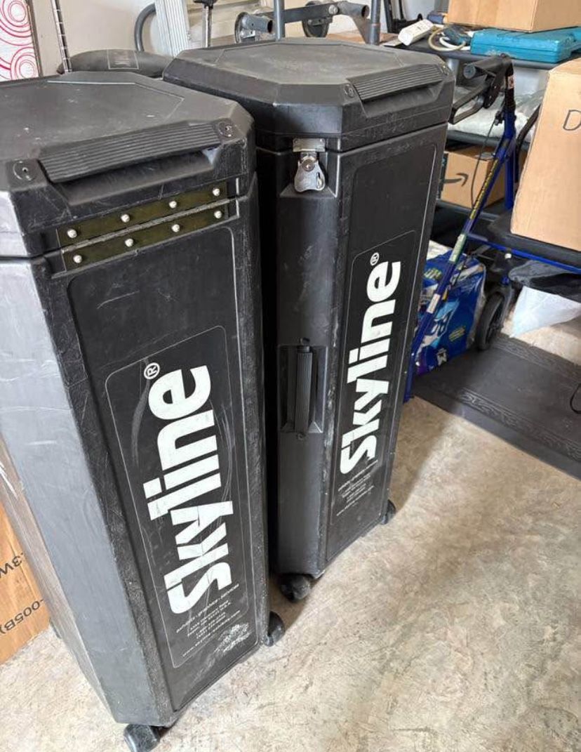 Professional pop-up display cases used for trade shows, events, or retail setups. Portable and easy to assemble. Includes protective cases.