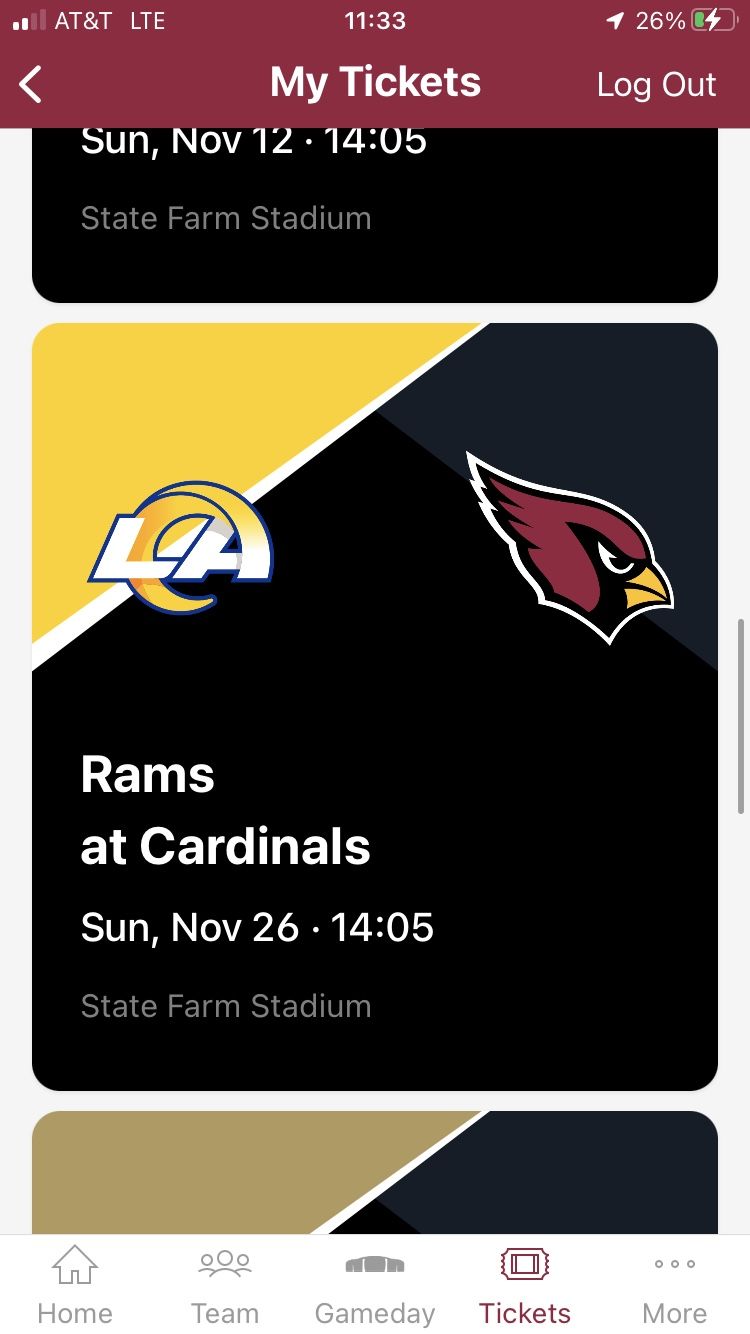 Rams Vs Cards $125 7th Row Section 135