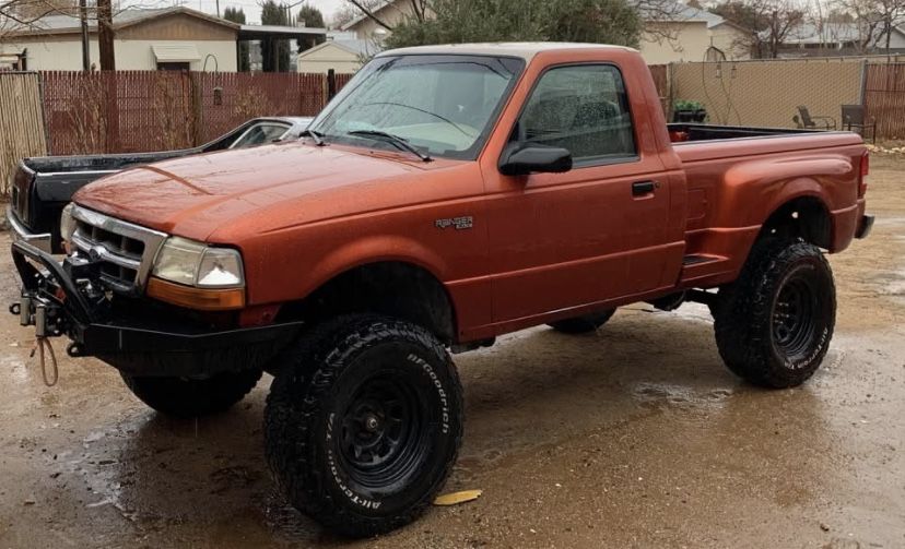 1998 Ford Ranger 4 Cyl 2.5 L / 5 Speed Manual / 2wd 163,006 Miles Clean Title Starts Right Up every time/ Idles Strong / Runs & Drives good Mechanically… All Fresh Fluids - (Oil, Transmission, Power Steering, Brake, and Coolant) New Rack & Pinion and tie rods / camber bolts Recent alignment New Spark Plugs & Wires Brand New Battery and battery hold down New serpentine belt and pcv valve New camshaft position sensor Full wash and detail Updated Interior New Radio / Center piece Flow master Exhaust / Straight Piped Sitting on a 6” Lift 30” All Terrain KO2 tires / (1 spare included) New lug nuts all the way around Heavy-duty Front bumper w/ remote controlled Smittybilt winch (Stock Chrome Bumper Included as well) Entire brake system ran through thoroughly (New rear drum hardware, new brake booster, and all wheels bled, adjusted, and verified). I’ll throw in more parts as well. To include, complete headlight assembly, interior components, trim pieces, decals, chrome bumper, and the full KO2 spare tire.