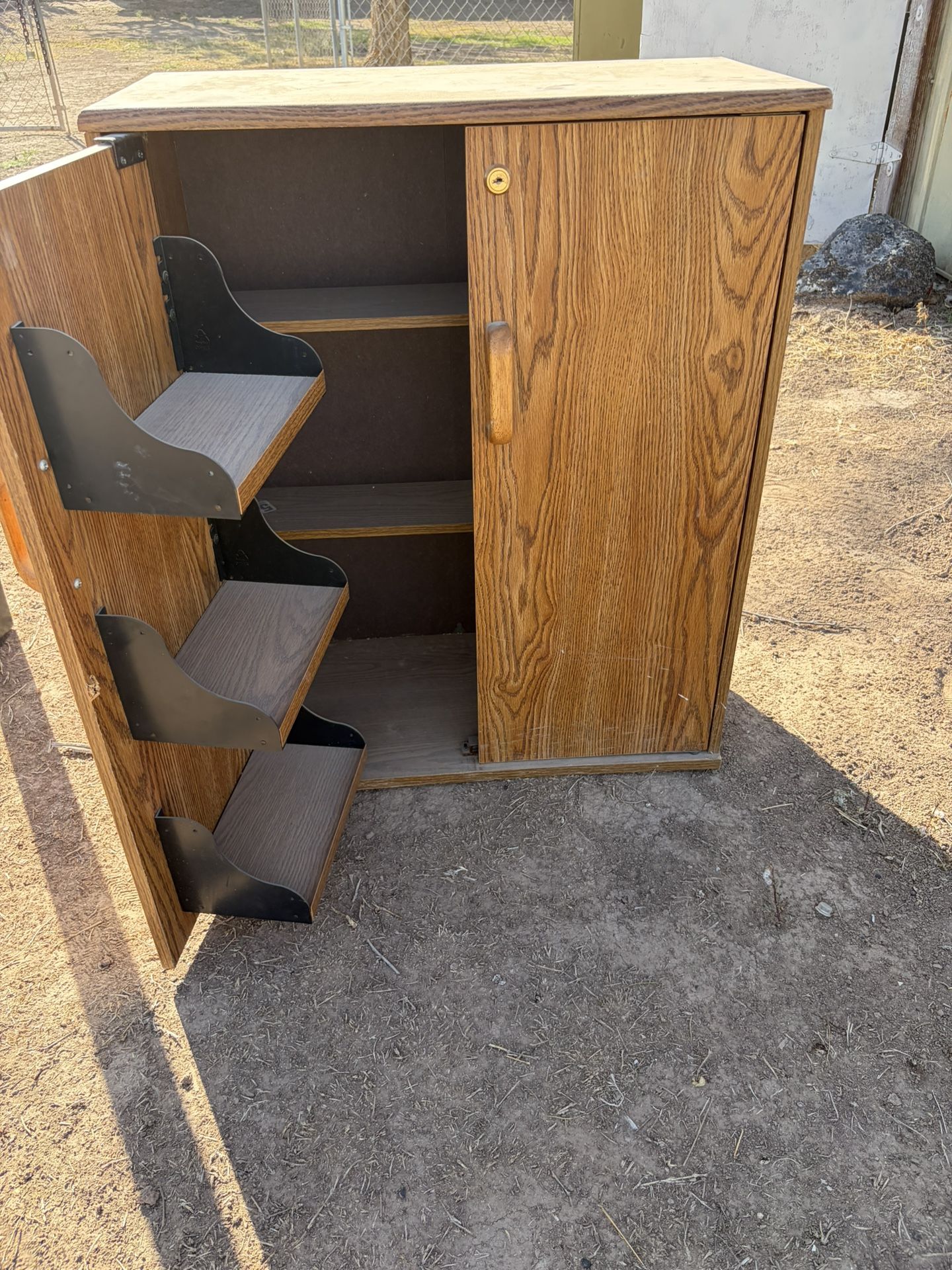 Great storage cabinet in great condition; keep items stored in order; durable/solid wood