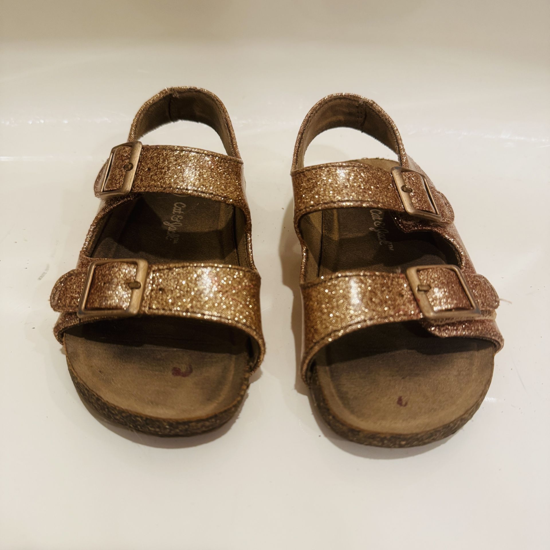 Cat & Jack Gold Toddler Girl Sandals Velcro Strap Size 7 Good Condition Located in Irvine