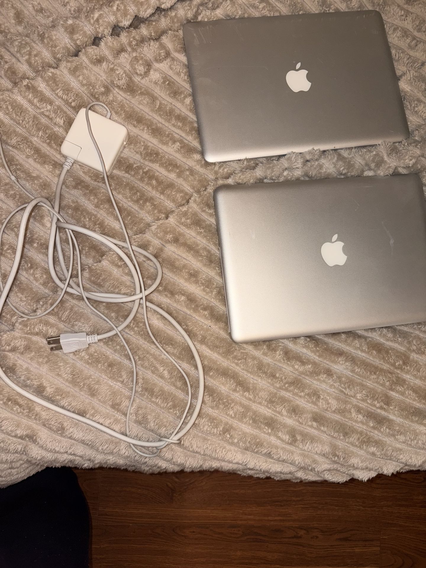 Hello if you want to make offer please do! Both MacBooks doesn’t not hold charge I never gotten to try the MacBook Air but does turn on The other MacBook does turn on all the way and is on someone’s account! All I’m asking for is 150 And does come with charger for both so the 1 cord fits for both MacBooks