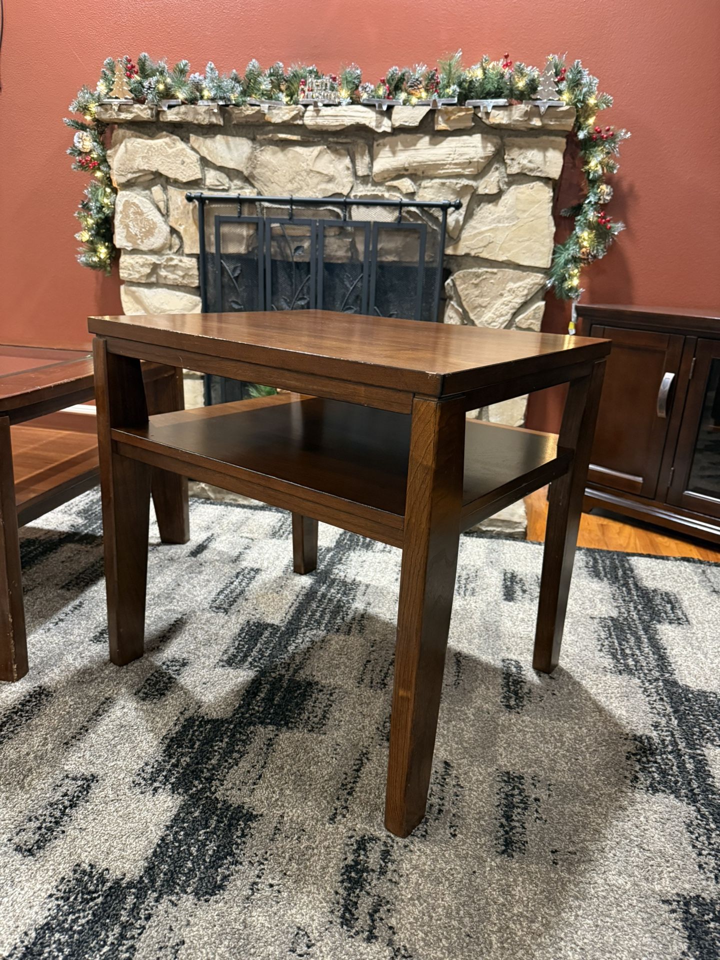 Cherry finish wood end table for living room. Excellent condition 26” x 22” x 25” height