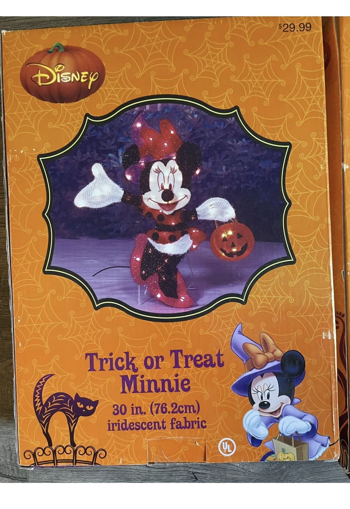 The Minnie mouse has been opened and used inside only. A few of the black dots will need glued. One of the half dots is missing.