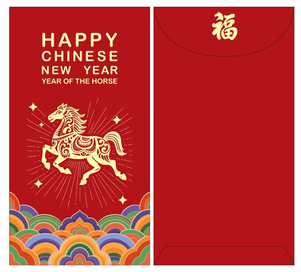 Pack of 100pcs 2026 New Year of the Horse Luxe Red Envelope Lucky Money Packet