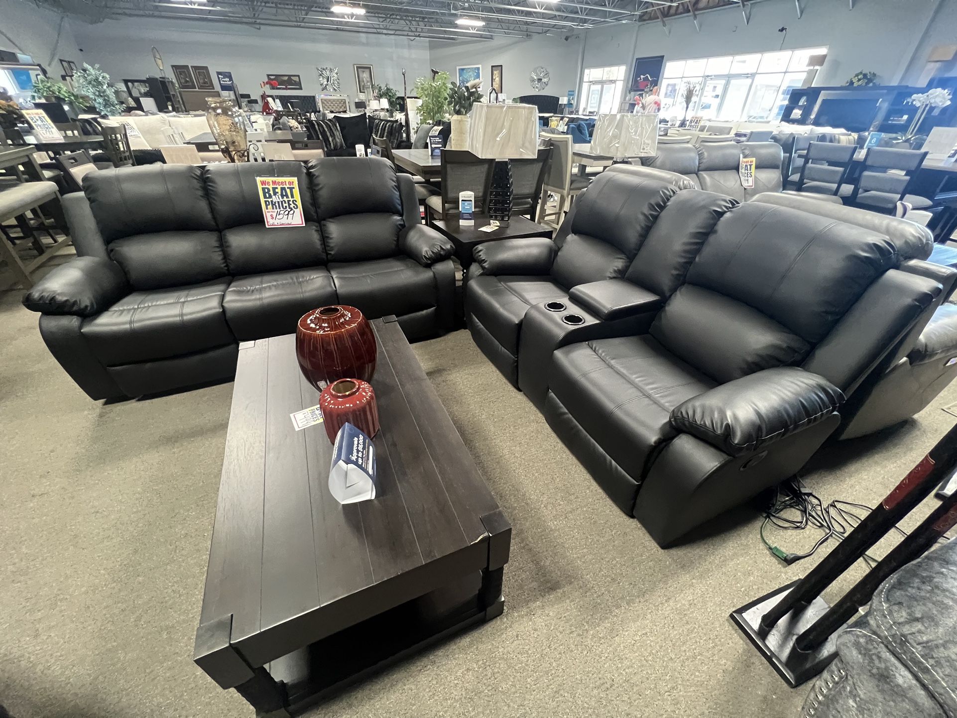 Black Reclining 3pc Couch Set $1599🖤✨