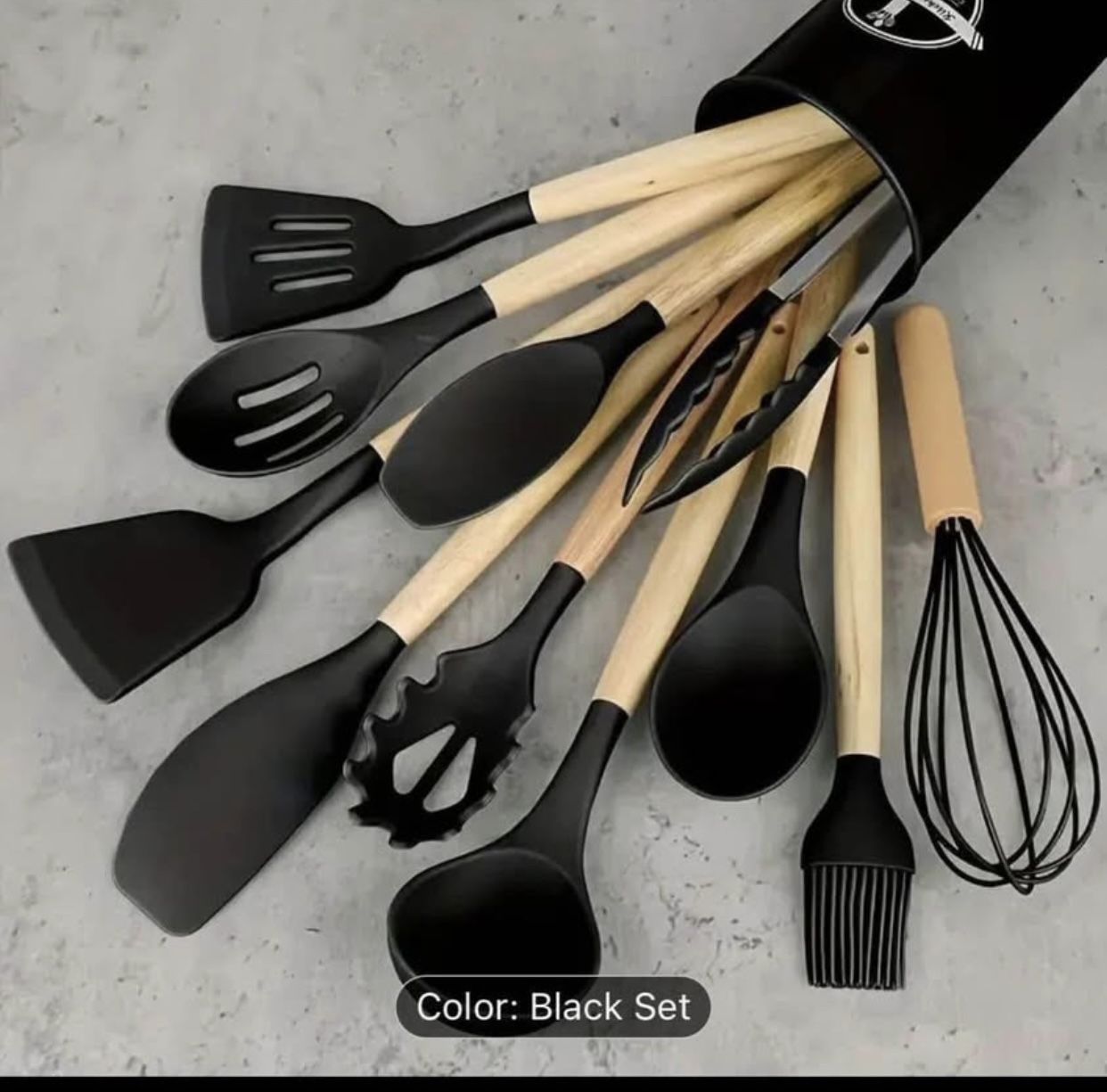 12pcs Silicone Cooking Utensil Set, Durable Kitchen Tools, Non-Stick Spatula, Spoon, Tongs, Whisk, W