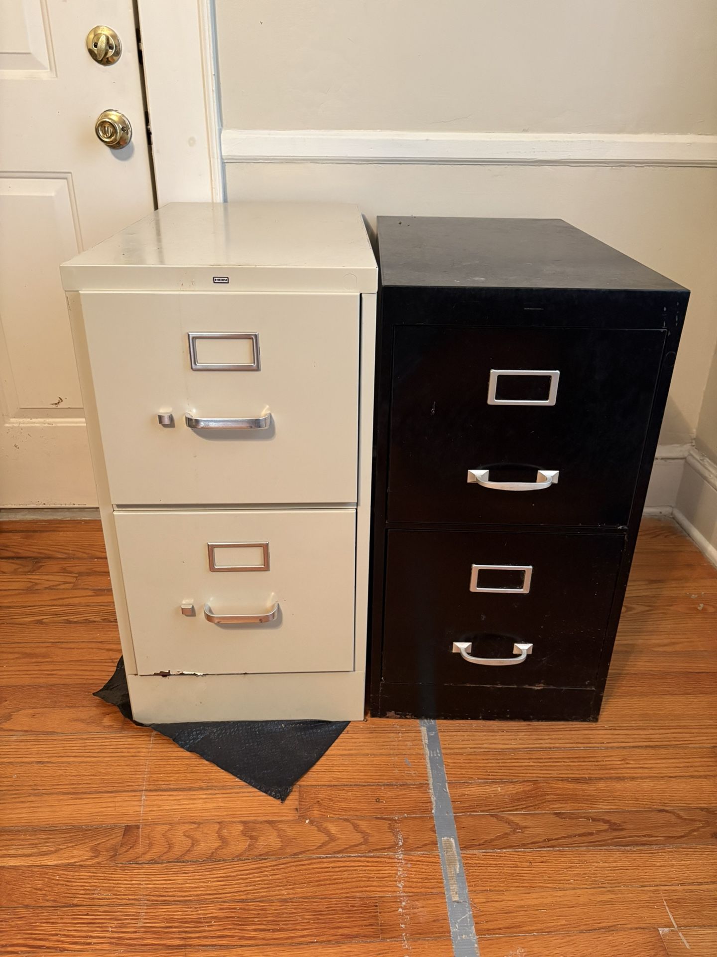 Beige file cabinet 27x29 and black file cabinet 27x28. Will sell both for $30.