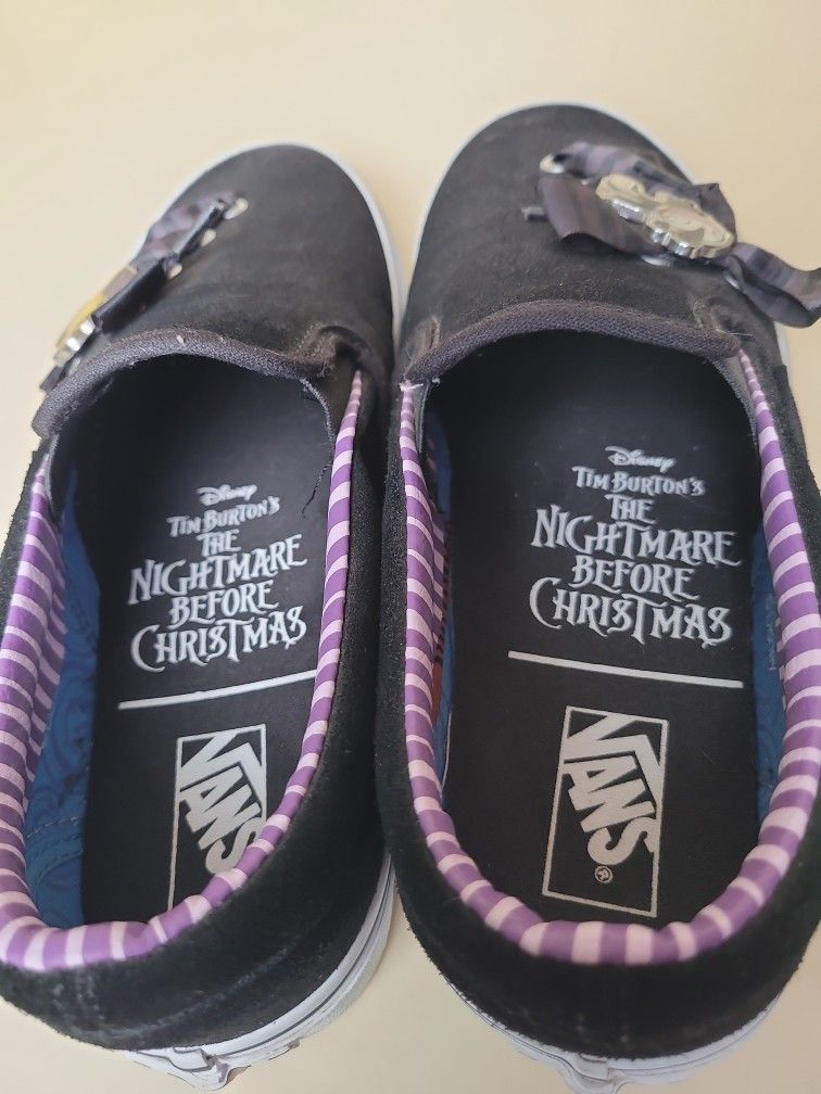 VANS × The Nightmare Before Christmas slip-on lace shoes with charms. New. US Men's 6, US Women's 7.5
