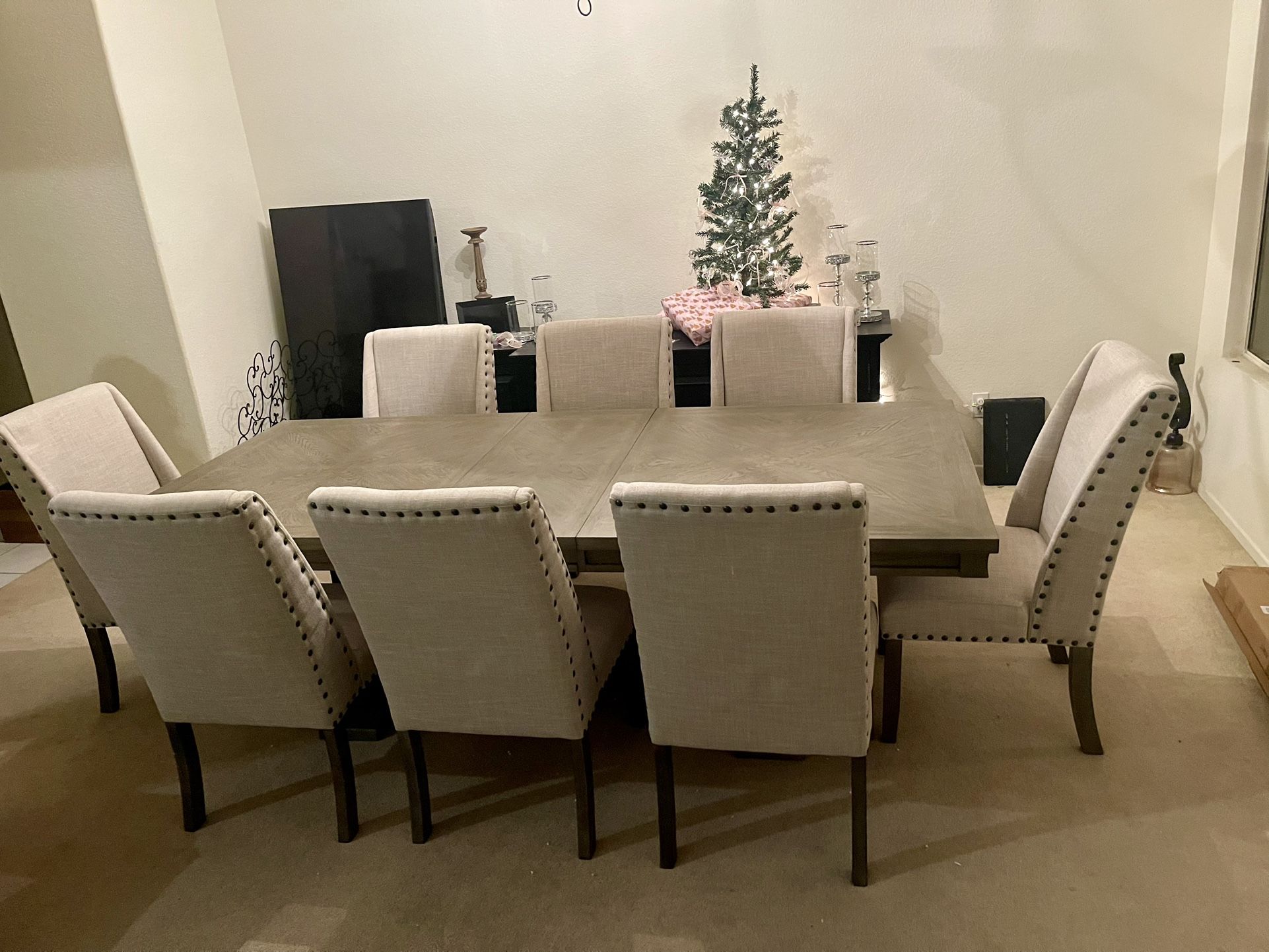 9pc Dining Set - Dining Table + 8 Beige Chairs