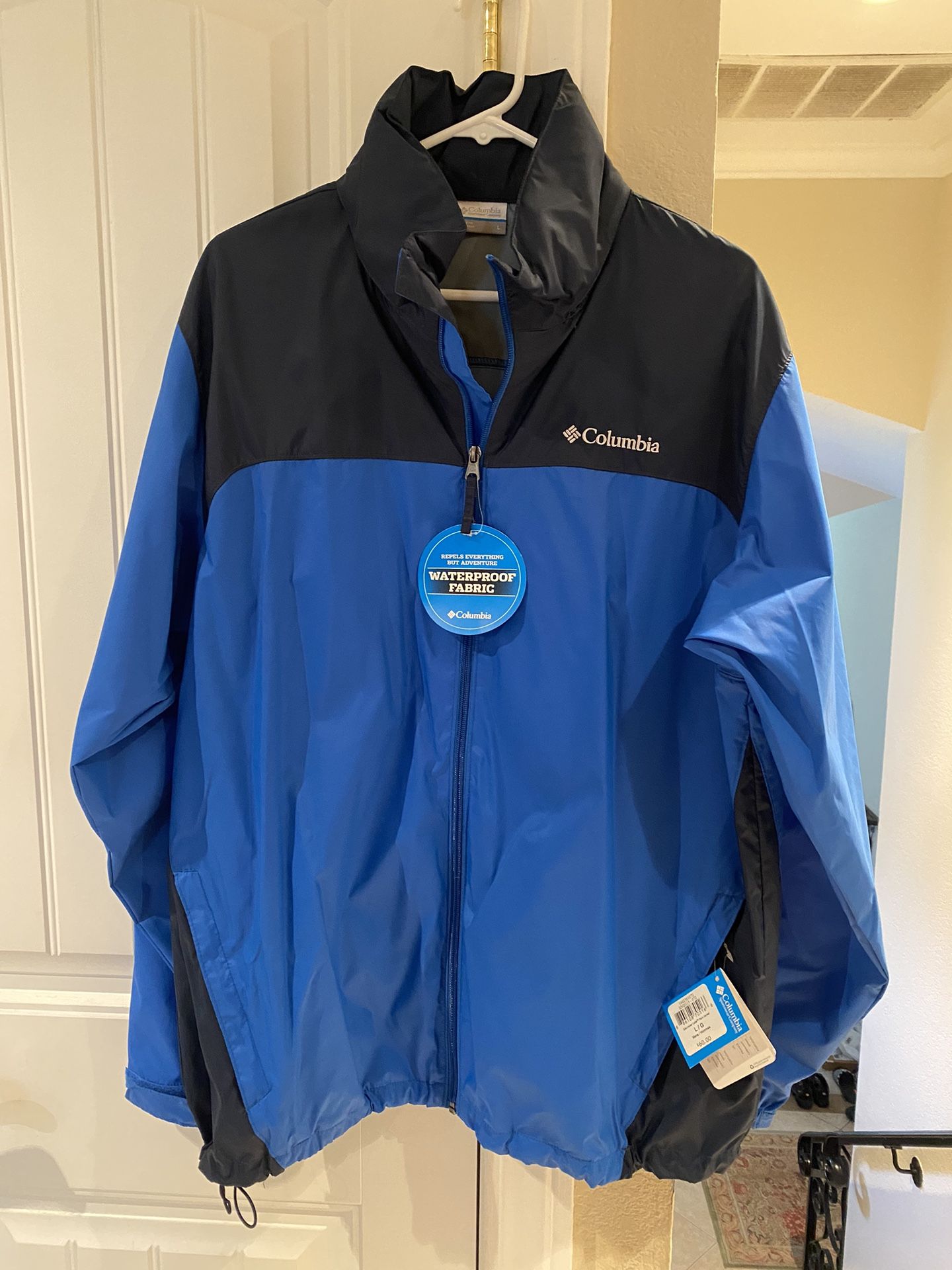 Men’s Columbia Jacket size: Large Waterproof Adjustable strings Hood in collar Brand new with tags/never used