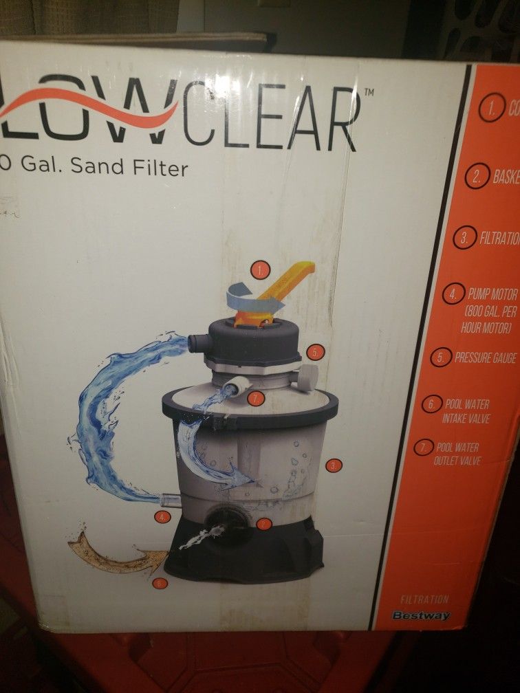 If you're looking to upgrade your cheap above ground pool filter look no further, priced to sell today is this 800 gal. Flow Clear sand filter. In excellent working condition only used for 2month comes with a 1/2 bag of sand and hoses. Serious inquiries only please) No low baller's.