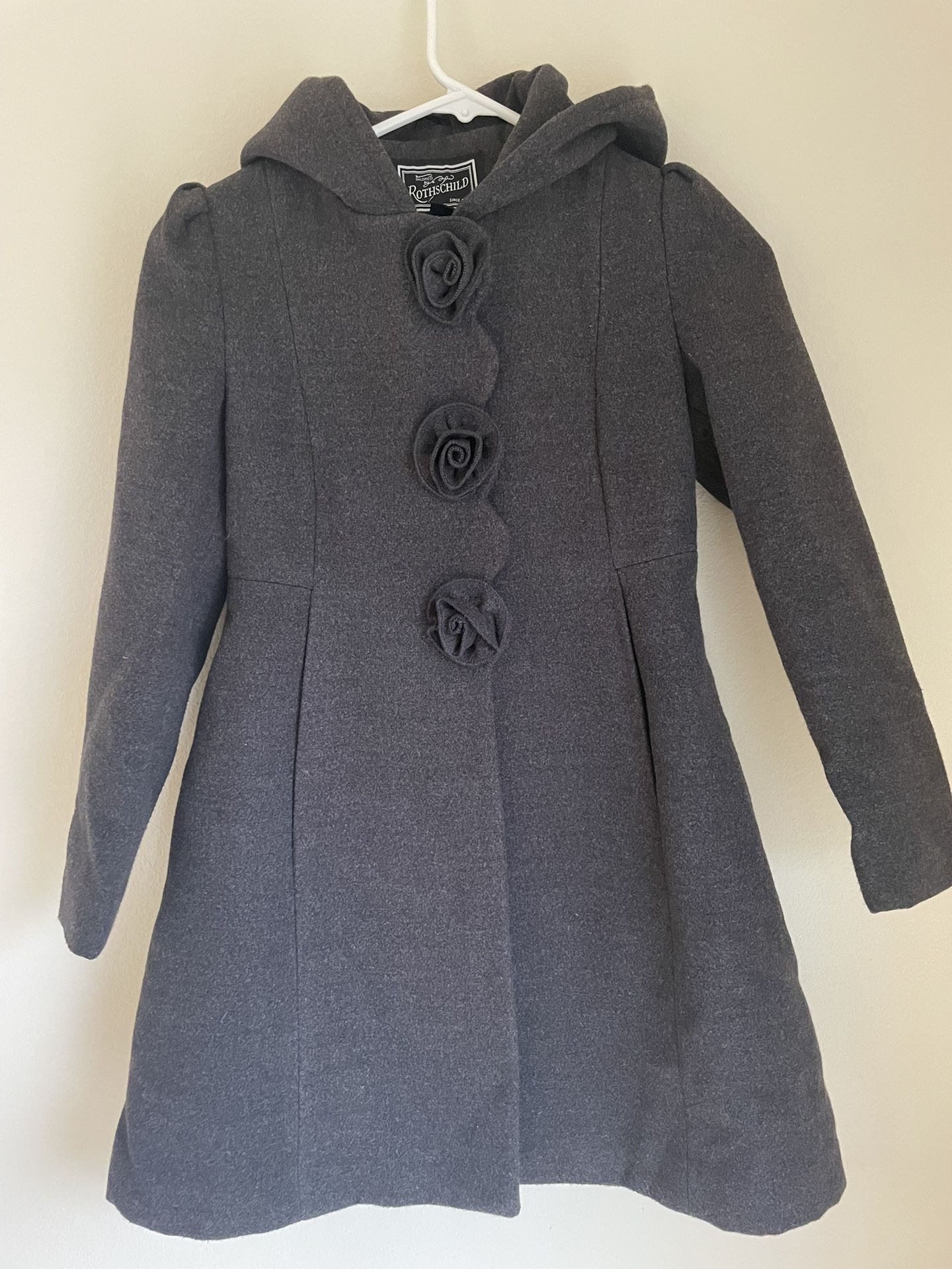 Beautiful gray Rothschild dress jacket with Rose detail Worn 1x Size 7/8 Meet in Edmonds. Cash only