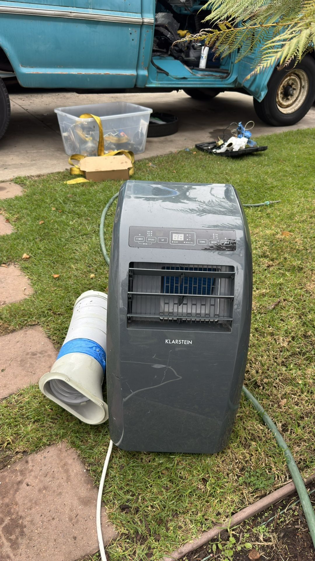 Selling a Klarstein portable AC unit, model YPE-10C. It is fully functional and blows cold air. Good option for a bedroom, office, or small living room. Standard 115V plug. Specs: • Cooling capacity: 10,000 BTU/hr • Power: 115V / 60Hz, 980W • Refrigerant: R410A Includes the AC unit and the exhaust hose/duct shown in the photos. Normal cosmetic wear from use. You can test it at pickup.