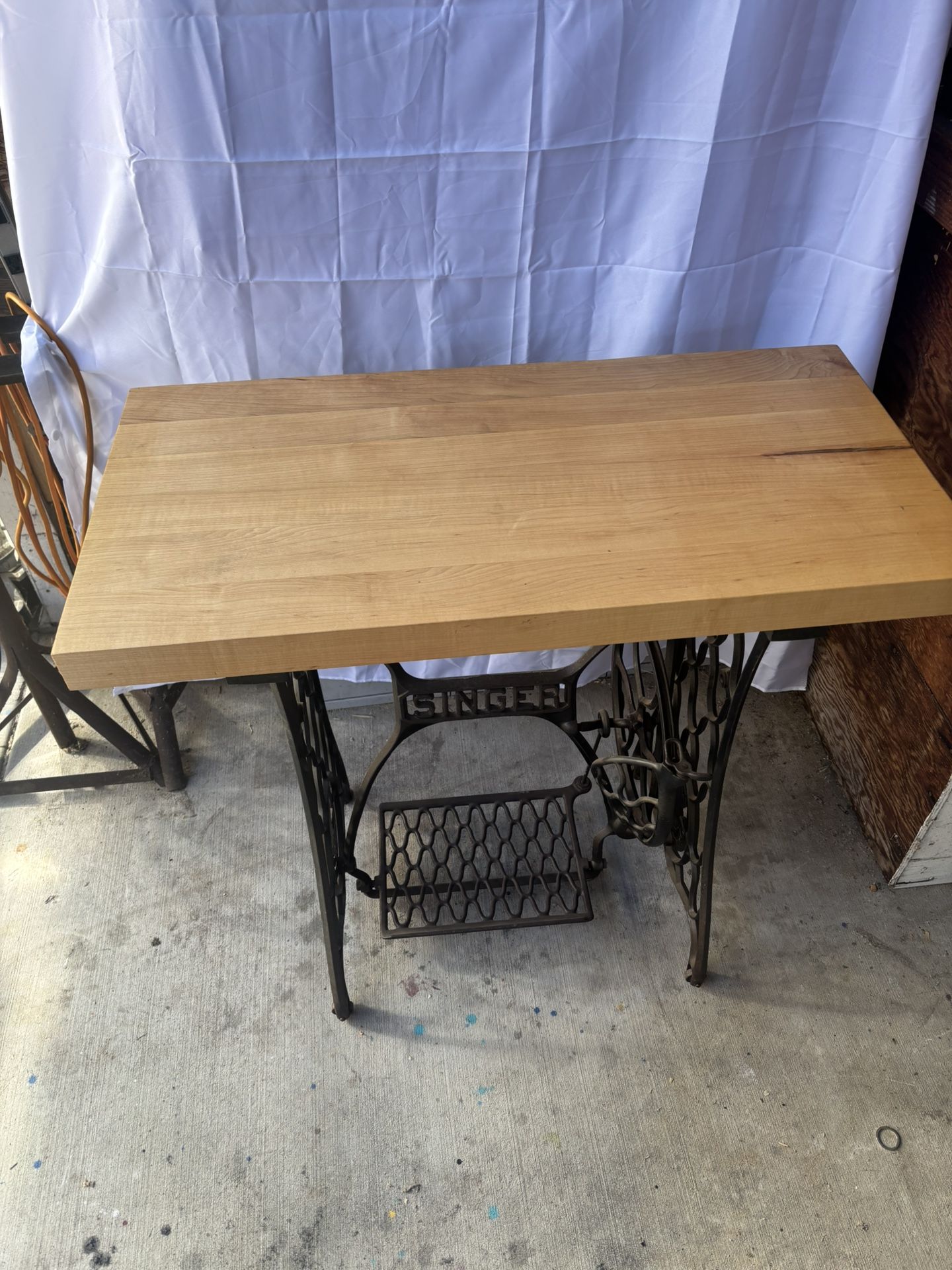 Old singer base with new 2” wood top 33” wide x 16-1/2” depth.x 32”height