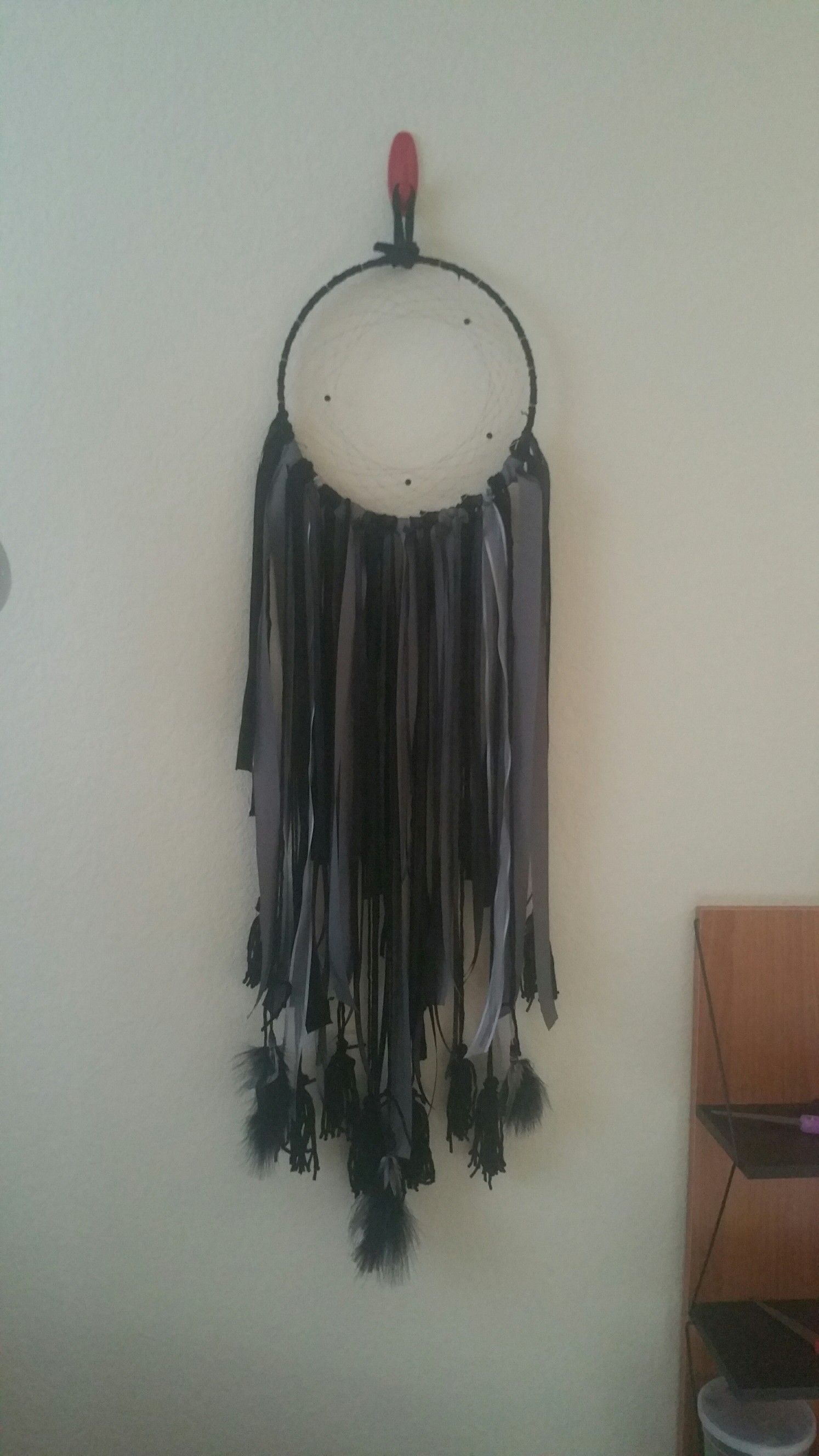 Handmade dreamcatcher by me. Very nice piece to add to any decor.
