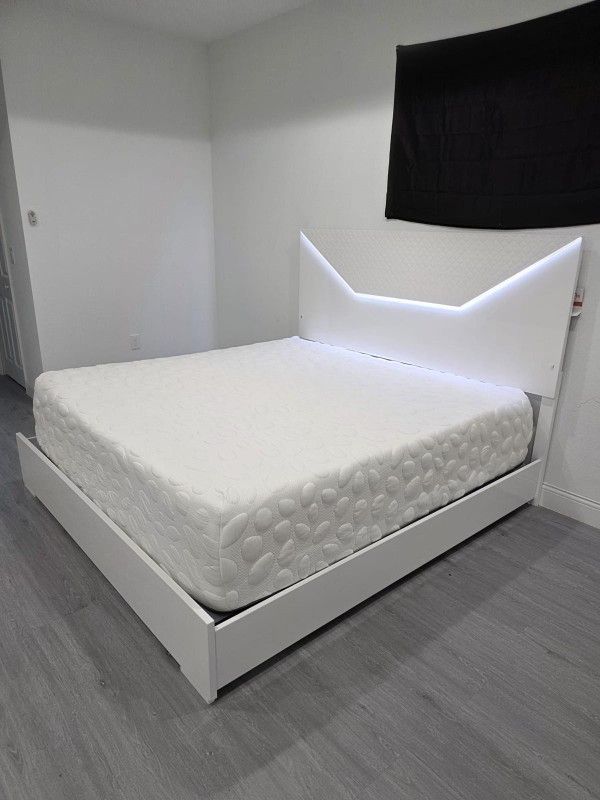 Cama LED con Colchón nueva,hacemos el delivery Disponible en blanco Ordene desde la comodidad de su casa, la entrega es inmediata