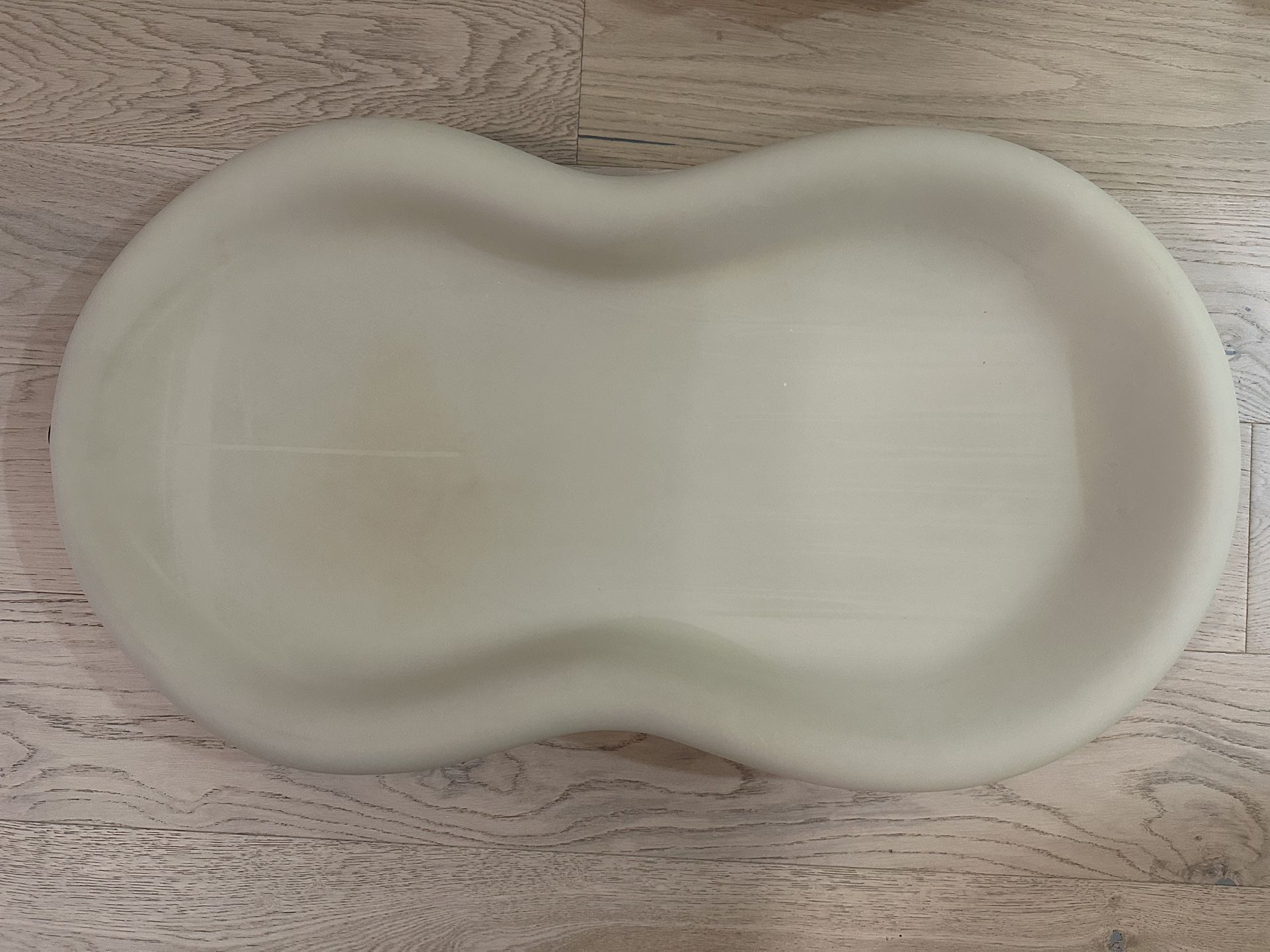 Keekaroo Peanut baby changing pad in cream. Waterproof, wipeable, and no covers needed. Used condition with light discoloration from normal use. Fully functional with no cracks or damage.