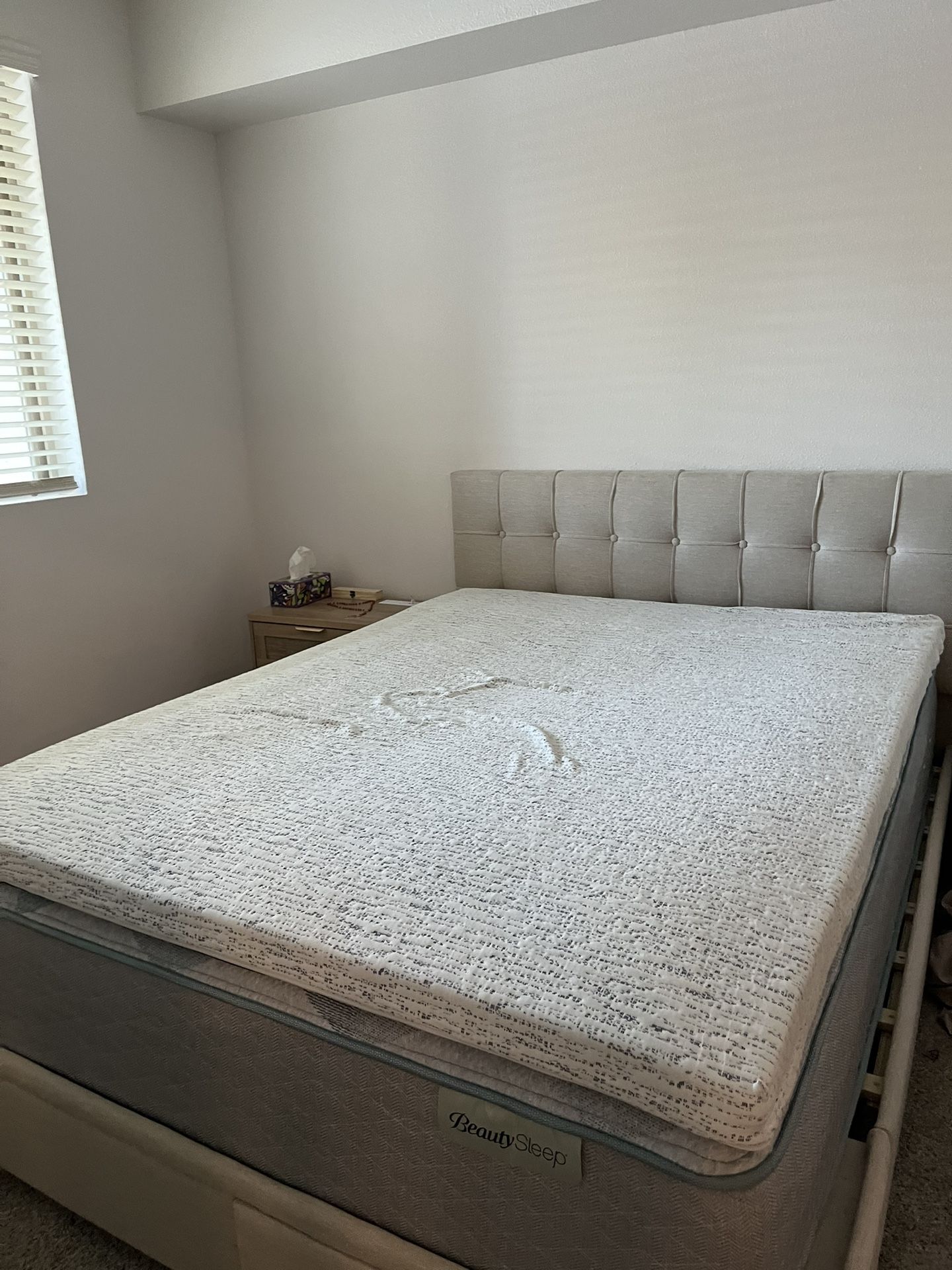 *MATTRESS TOPPER ONLY - bedframe is not for sale* select high density mattress topper Queen size 3 inches Breathable, washable, has straps to fit snugly to mattress Only used for a week, I wanted something more firm Comes from a home with dogs Pickup Queen Creek & Dobson. No delivery. Cash preferred. **Please note that some of my items are at different locations - this item is located in Chandler. NO DELIVERY Listed price or best offer