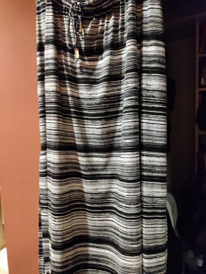Black with white, slits on sides, long, polyester Spandex Can meet at Bellevue crossroads area or downtown Redmond or sammamish