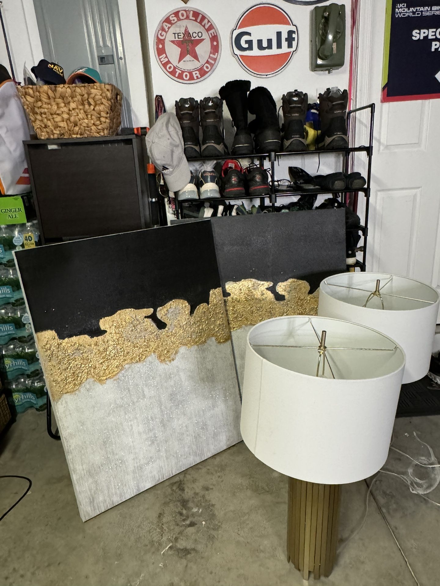 2 x Picture size 29,5 x 39inches 2 x metal lamp gold white $250 for all