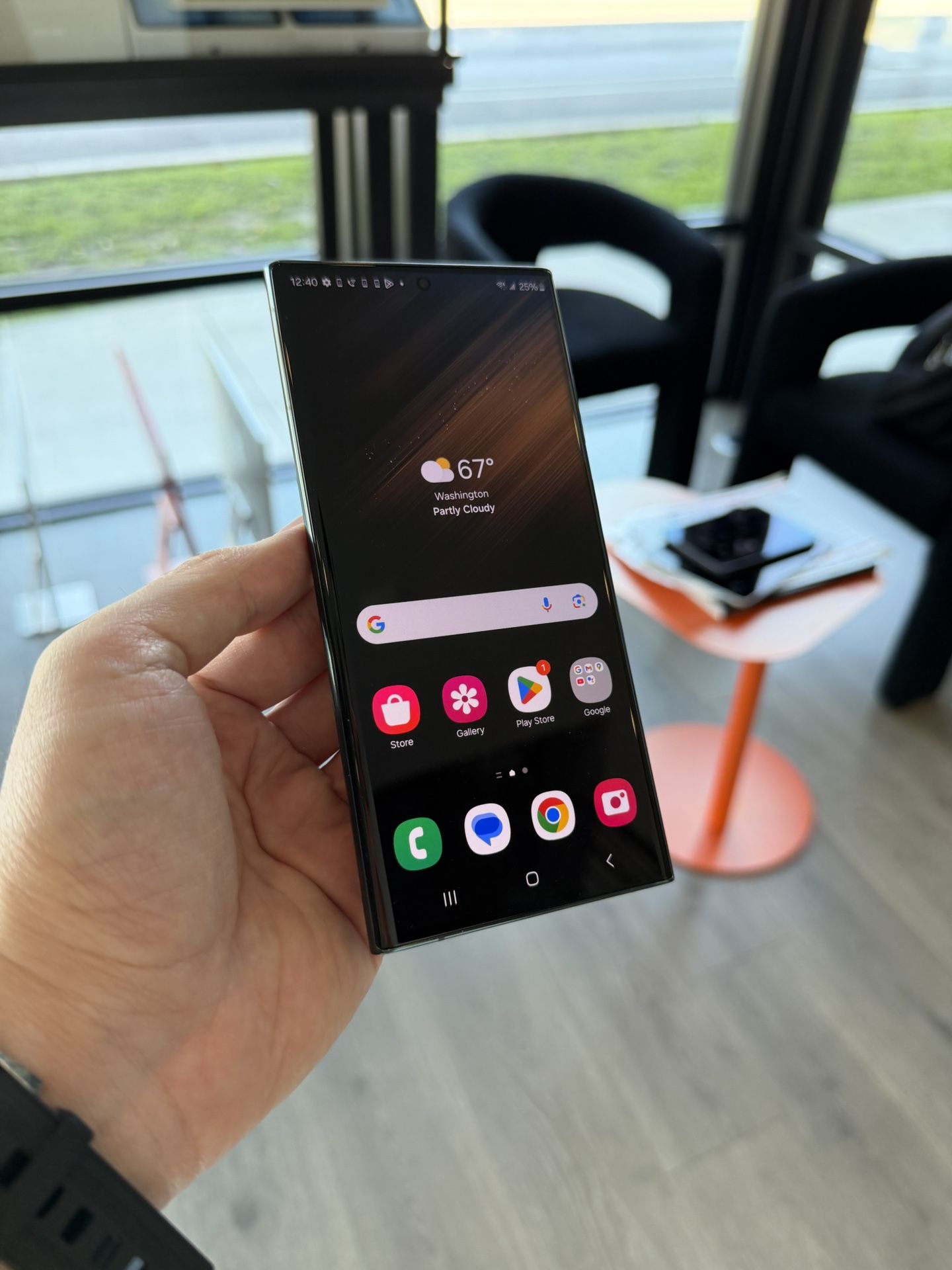 Samsung galaxy S22 ultra 128GB Unlocked to any carrier 90 day warranty We offer financing Have other options in stock asking about Auto details downtown Austin!