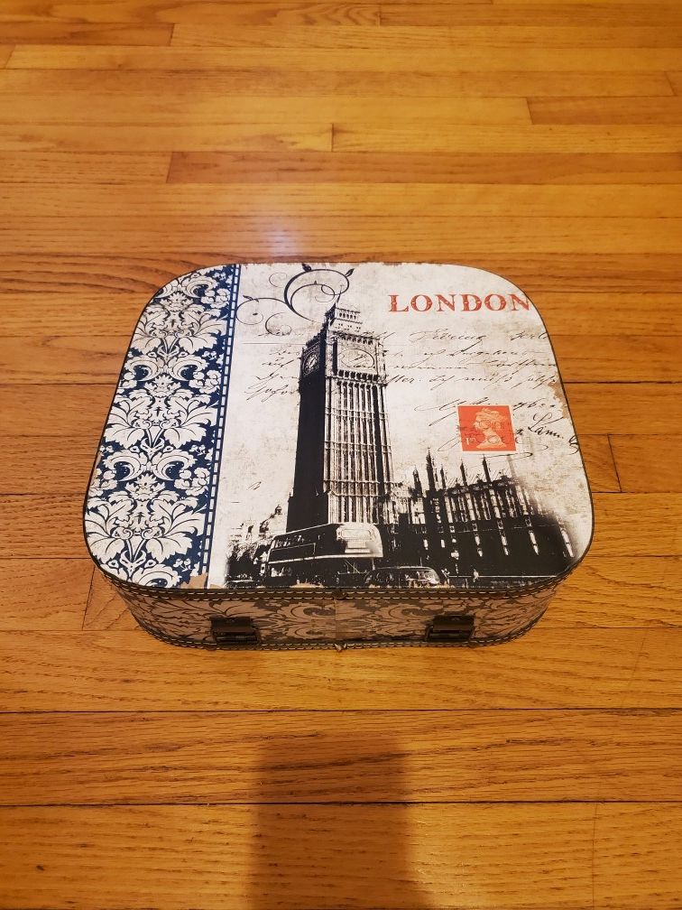 Designed meant to look as an old luggage. Size is a bit small meant more to be a carry on. No damage. PICK UP ONLY.