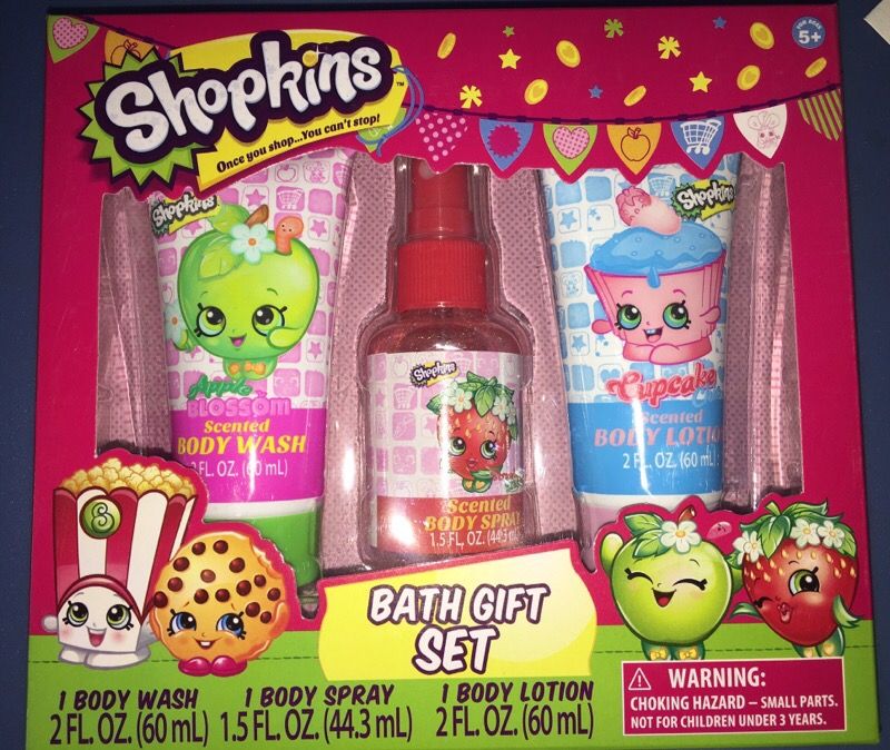 Brand new shopkins bath set includes body wash body spray and body lotion great as a gift or any occasion