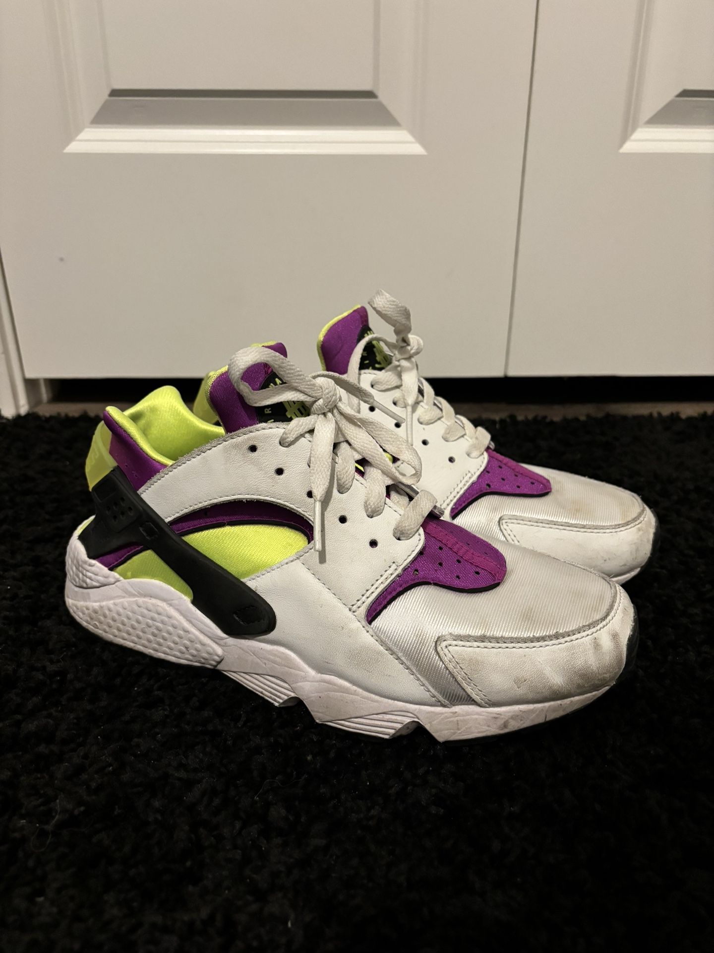 Nike Air Huarache ‘Magenta’ Men’s Size 9.5 Clearly these are cooked. Evident stains, dirt marks, scuffs, and wear on the traction. Literally asking for a $20 bill for em.