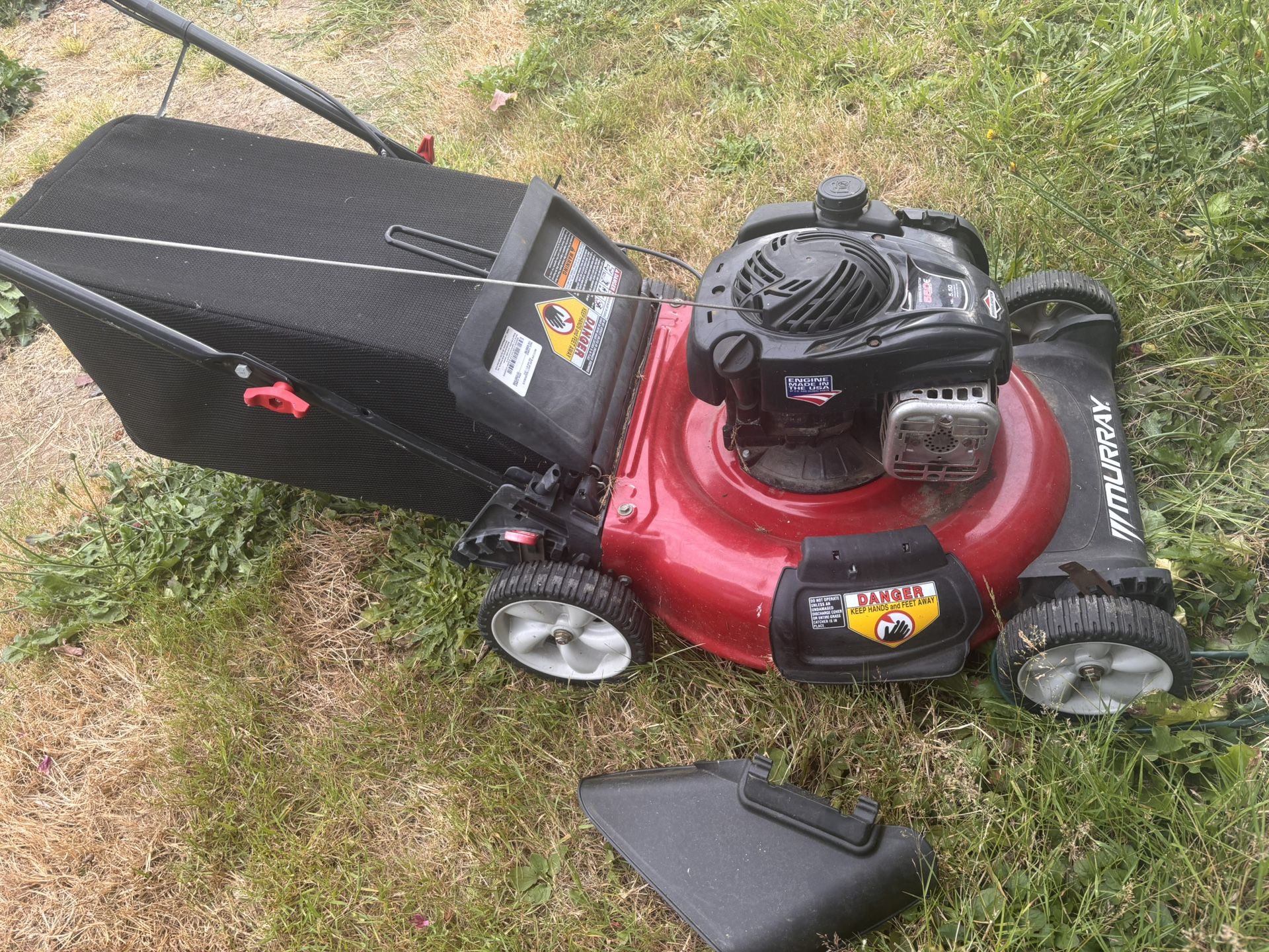Available- Murray. Works great but did sit so starting up w quick start- new oil and gas I’d imagine would make it pull without using quick start. I had to get lighter option due to an injury. Pickup only in Olympia, 2 mi off the freeway. Has the bag and has the no bag guide “thingy” Pay via PayPal or Venmo or other cash app system.