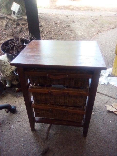 Cute little wicker basket styled table. Works great looks cute and has plenty of storage