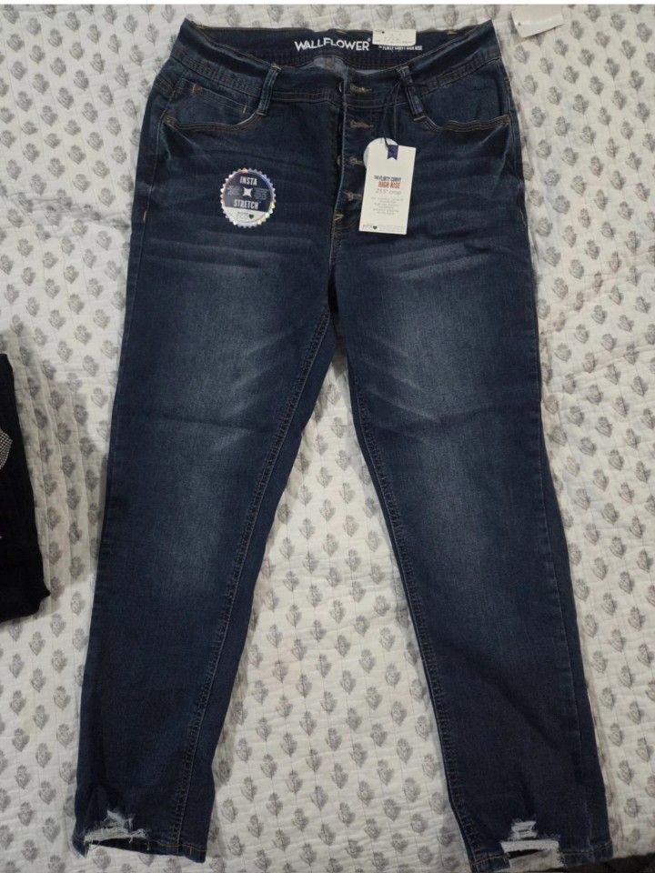 WallFlower Jeans Instastretch Skinny Stretch Distressed Blue 5-Pocket size 7 New with tags Make me an offer