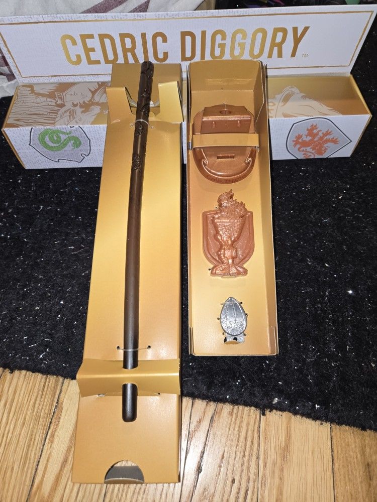 Harry Potter Cedric Diggory Wand Tri-Wizard Tournament 12" Wand You get the Following Inside Each Wand bo --Wizard Wand --Display Stand -Character Name --Die-Cast Icon Accessory Unique to Character: Golden Egg --Goblet of Fire Display Display your Wand in 1 of 2 ways: --Display in its Premium Packaging --Set Wand Vertically or Horizontally on the Stand PERFECT COLLECTION FOR ANY FAN OF HP ONLY OPENED to see which Wizard Wand was Inside New in Box Never Been Used Smoke and Animal Free Home **CHECK OUT MY OTHER LISTINGS FOR BUNDLING PRICING**