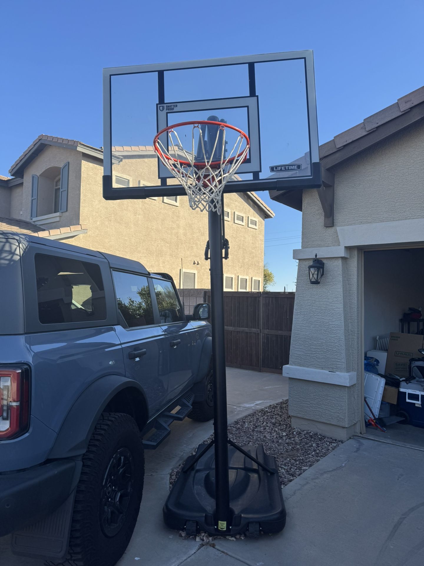 Lifetime Shatterproof 52” Portable Basketball Hoop. Extra large base, super durable, adjustable height, regulation rim size. Super easy to adjust rim height and move around. Can break down if needed to help transport. Paid $600 new for it a couple years ago. Pick up in Gilbert 85295