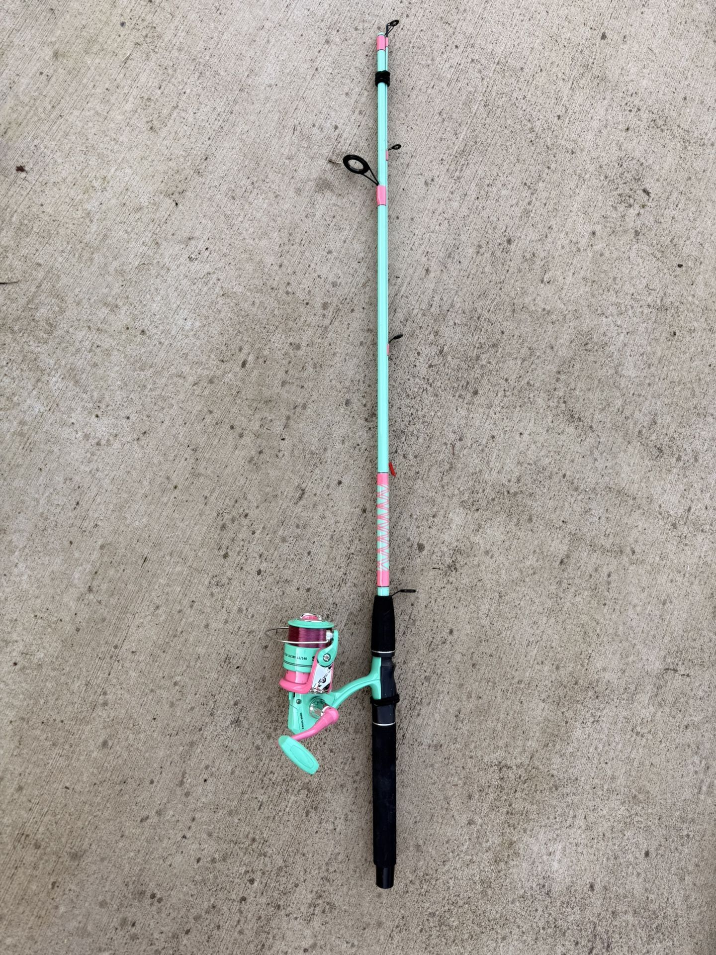 Used Looks to be in good condition Shur Strike spinning fishing reel Pink & Teal color Size 40 spinning reel Lightweight graphite frame, housing and spool Local pick up in Tacoma or Federal Way Let me know if you have any questions I have more fishing rods listed Make me an offer for multiple ones