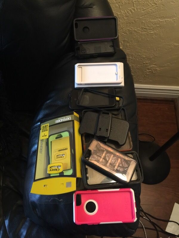 iPhone cases some are the 5s and 6 they other box cases and and lifeproof as well and one charger case .