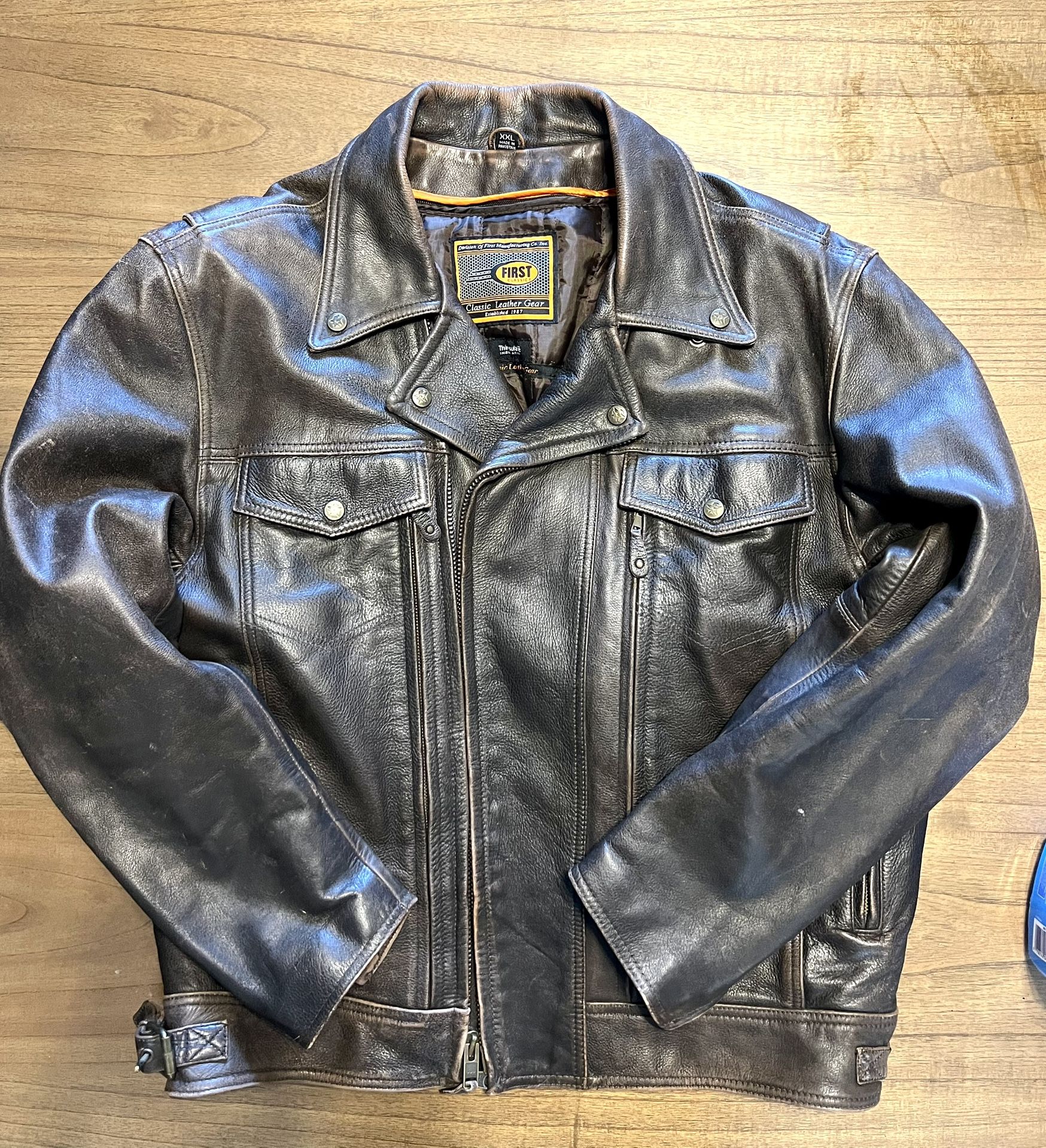 Leather heavyweight riding jacket with thinsulate zip out lining. Vented, Plenty of pockets, normal wear. I’m just not riding anymore. $75 OBO