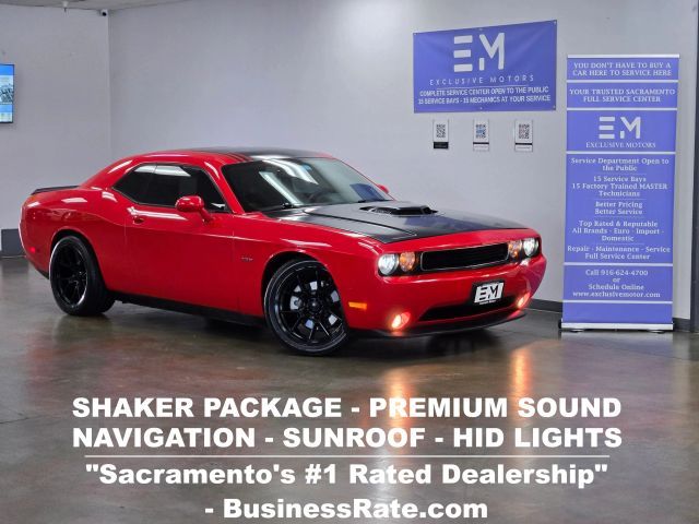 Clean 2014 RT Shaker Challenger loaded with every single available option for the year! Navigation, HID Headlights, Sunroof, Premium Sound Group II, plus so much more! Manual Transmission. Fully Inspected & Serviced by Our State of the Art & Top Rated Service Department. It's very rare to find a dealership that reconditions cars like we do. We advise against wasting your time and money buying from a private seller or dealership that doesn't spend thousands to significantly lower your risk of having to spend thousands yourself soon after your purchase! All of our Carfax records and in-house service records are open to the public! If you choose to come in after 5:00pm, please set an appointment as we are only by appointment at that time. Visit our website for the complete album of high quality photos, videos, CarFax & more at Located at Call & Text at Our dealership specializes in numerous top-name brands including an exclusive selection of vehicles. We may in-fact have the highest rated (5 Star) service department within 100+ miles here, with an A+ Better Business Bureau rating! Our customers are entirely important. We understand that without YOUR satisfaction, we wouldn't be able to stay true to our name. Quality is key, and service goes hand-in-hand, with Exclusive Motors (EM). We prioritize quality here at EM; Service is the most important quality we provide, so all of our vehicles go through a rigorous multi-point inspection to ensure proper function. All vehicles here are serviced by us, and when we say service, we're not just doing an oil change. Just see what our customers have to say by checking out our reviews for our location here in Sacramento! #ExclusiveMotors Exclusive Motors Dealership: Purchase Inquiries Call/Text or Email to to look at the vehicle you are interested in or to take the Car out for a Test Drive! You'll be glad you came in, We Promise! is offered and we will help you get qualified. () We only deal with Fair Pricing, Fully Disclosed Records and Quality Pre-Owned Vehicle Services. Every car is inspected by our Experienced ASE Certified Technicians using our Famous Multi-Point 're-Owned Vehicle Inspection. Our vehicles are not allowed for sale with any Safety Issues, not even those considered 'minor.' Our customers are very important to us, so we only sell the best serviced cars that we can. We Have It All in our Exclusive Motors of : ... Disclaimer: All vehicles subject to prior sale. We reserve the right to make changes without notice and are not responsible for errors or omissions. All prices exclude government fees and taxes, any finance charges, and any emissions test charge. Always verify vehicle information with your sales representative before purchase.