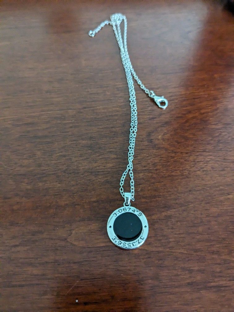 Effy Obsidian Tanzanite Pendant Silver Necklace. Mt. Kilimanjaro Coordinates. Jewel of Adventure. Wanderer Safe Travels. This necklace features inscribed Mt. Kilimanjaro Coordinates on one side and wish of "Safe Travels" in Swahili on the other side. A gorgeous 1" tanzanite center pendant with 22" long chain.