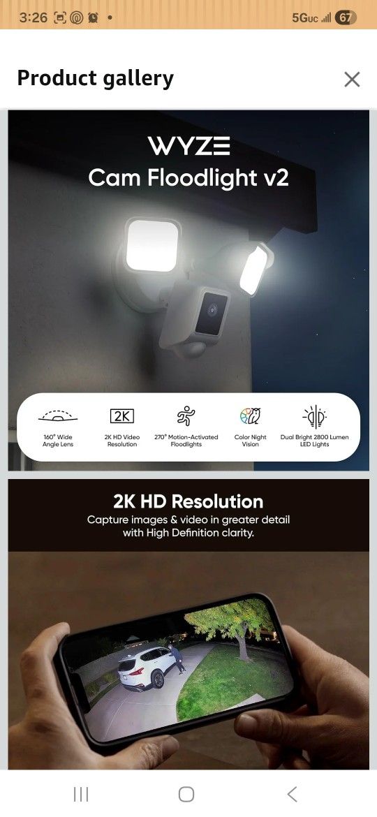 Wired Outdoor Wi-Fi Floodlight v2 Home Security Camera with 2K Video, Color Night Vision, Motion Activated LEDs - White