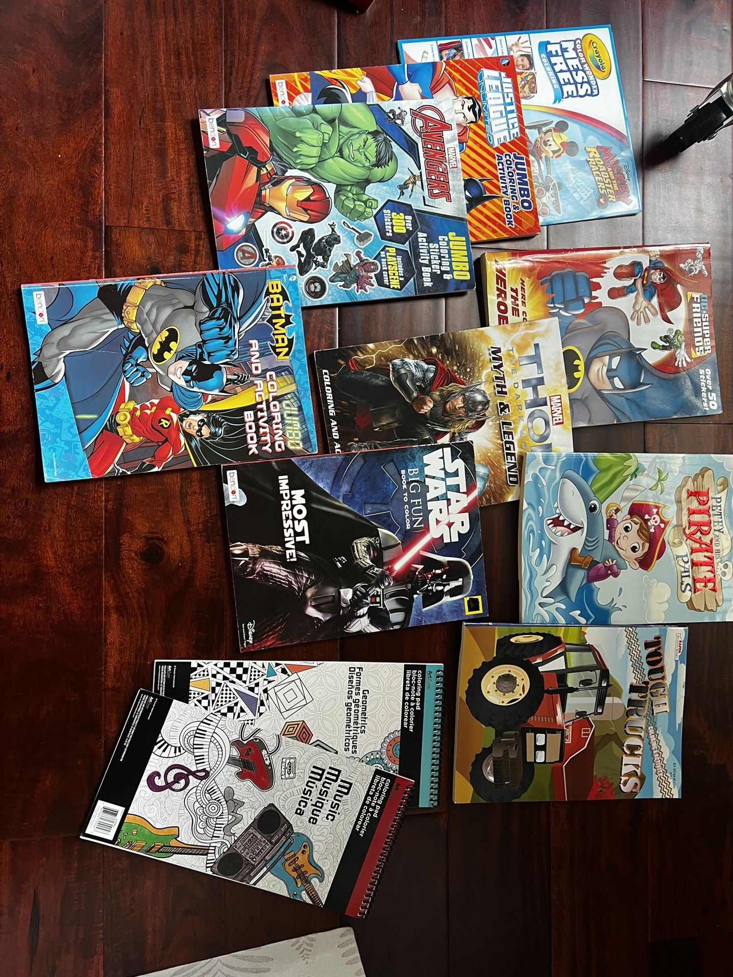An assortment of kids coloring and play books and more! GREAT GIFTS or party favors or the classroom! 2 “carry along” Ninja Turtle sets 1 pack of 3 set of Mickey and Minnie crayons 12 total books 3 full sets of 24 Crayola crayons a set of 36 washable crayons 2 sets of 8 triangular crayons and 1 set of 24 plays look colored pencils and more! $25 obo