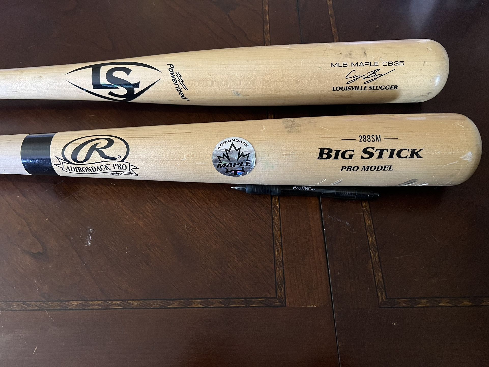 Louisville slugger wood bat 33 inch Cody Bellinger pro model $140 Rawlings big stick wood bat 34 inch Maple $75 Both bats were to big for my son and only used to hit of a T . Only took a few swings They are in Excellent condition.