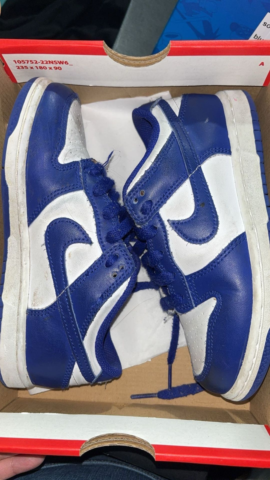 Kids blue and white Nike dunks