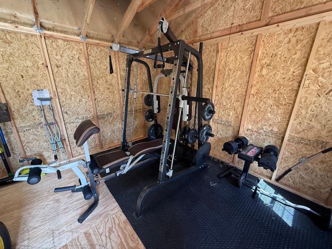 This 2022 Marcy Smith Machine / Cage System, model MD-9010G, is in like-new condition, showing minimal signs of use and offering an exceptional home gym experience. It comes fully equipped with a Lat Tower, Leg Extension/Curl, and Rowing Station, providing a versatile range of exercises for a complete workout. The machine arrives ready to use with no assembly required, making it an ideal choice for those looking to set up a powerful fitness solution at home.\n\nThe Marcy Smith Machine MD-9010G boasts a robust maximum resistance of 600 lbs, catering to users of varying strength levels and supporting progressive training. Key features include a durable bench seat material for comfort during workouts, along with multiple stations to target different muscle groups effectively. This model is designed for comprehensive strength training, offering the functionality of a full gym in a single, compact system.\n\nBuyers will appreciate the high-quality construction and thoughtful design of this 2022 model from Marcy, a trusted brand in home fitness equipment. Its all-in-one capabilities and excellent condition make it a standout option for building or upgrading a personal gym setup.