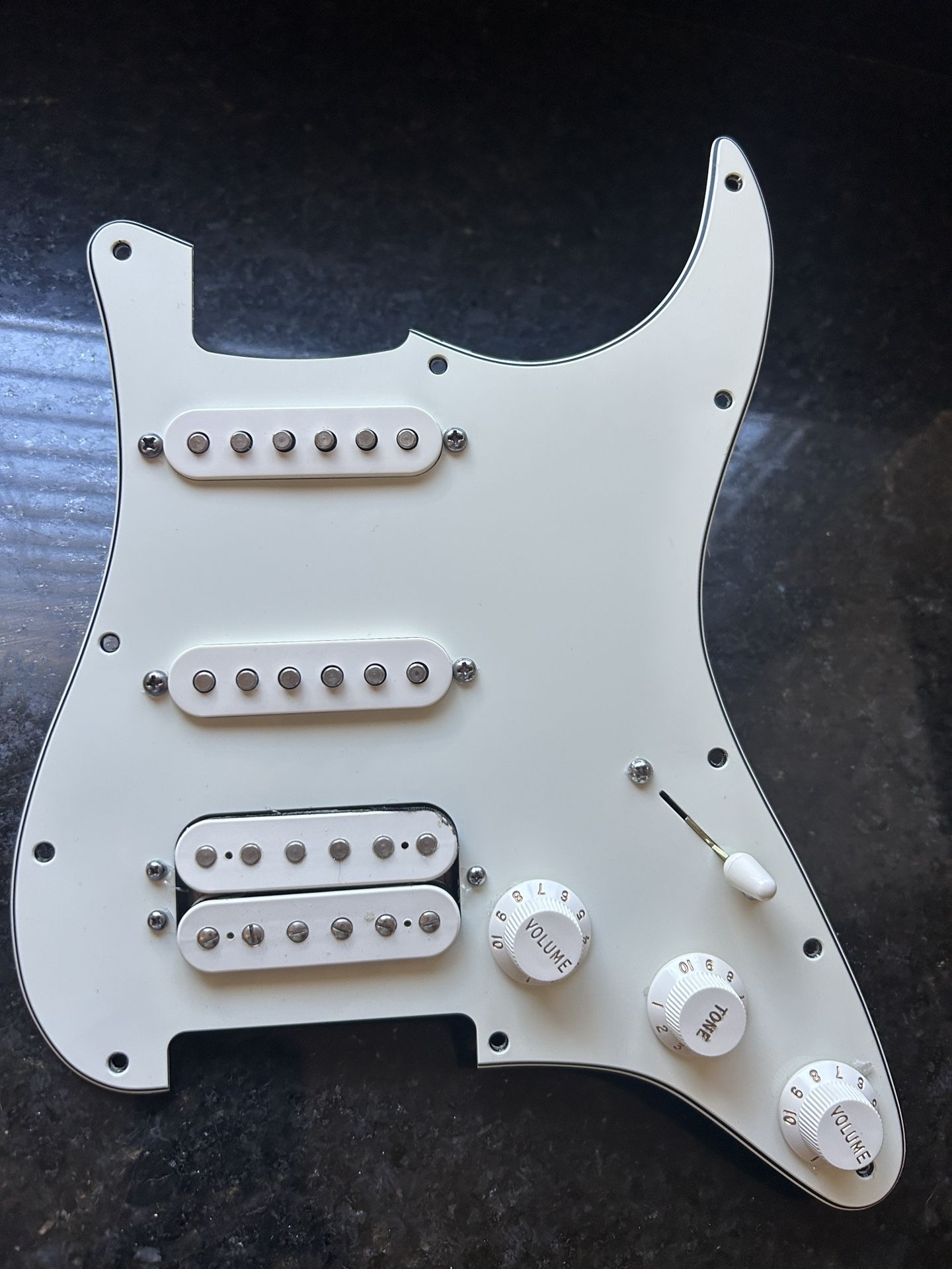 Fender HSS loaded pickguard from a MIM Strat Deluxe. Sound great. Humbucker has a pretty tight, rock tone This has the USB connectivity port so you can directly plug it into your laptop, DAW etc. If you don’t want/need the USB, it simply unplugs and you can toss it