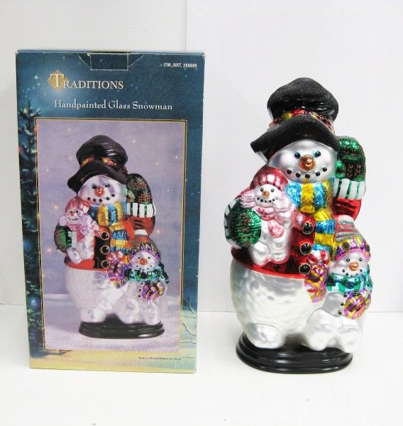 For Sale Hand Painted Glass Snowman 18" Tall 288609 Wood Base Traditions. In Excellent Condition. Local pickup only. No delivery. No shipping. No meeting halfway. Only Visa, MC, Debit, Zelle, Apple Pay (plus tax) or cash (tax included). No other forms of payment are accepted